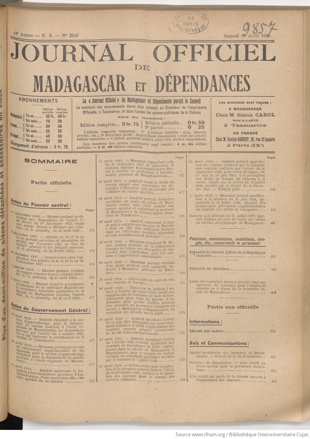 PARUTION PAR DATE